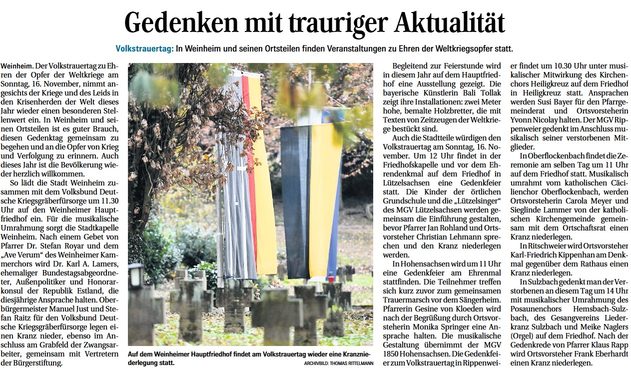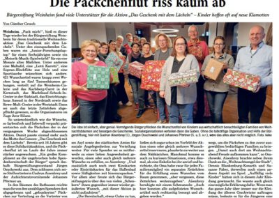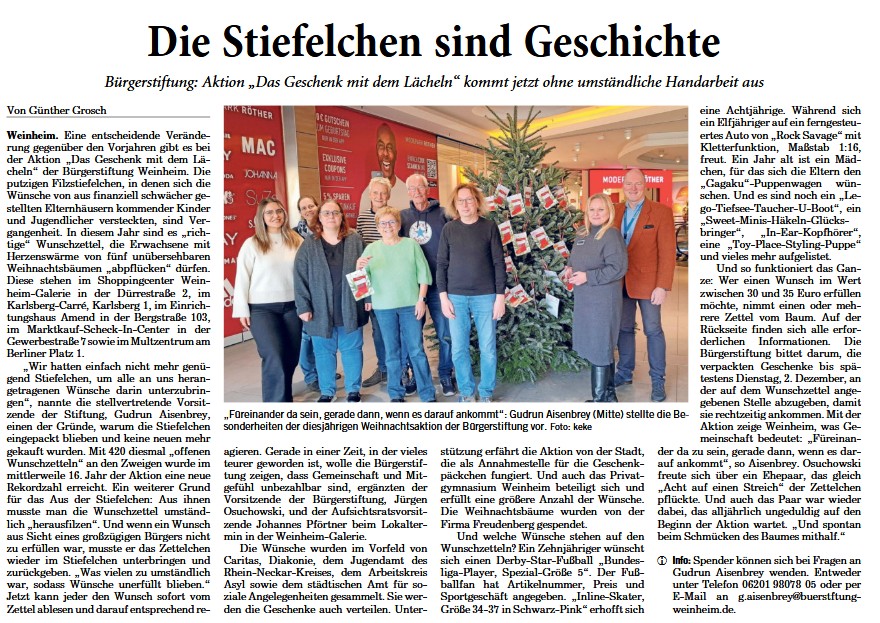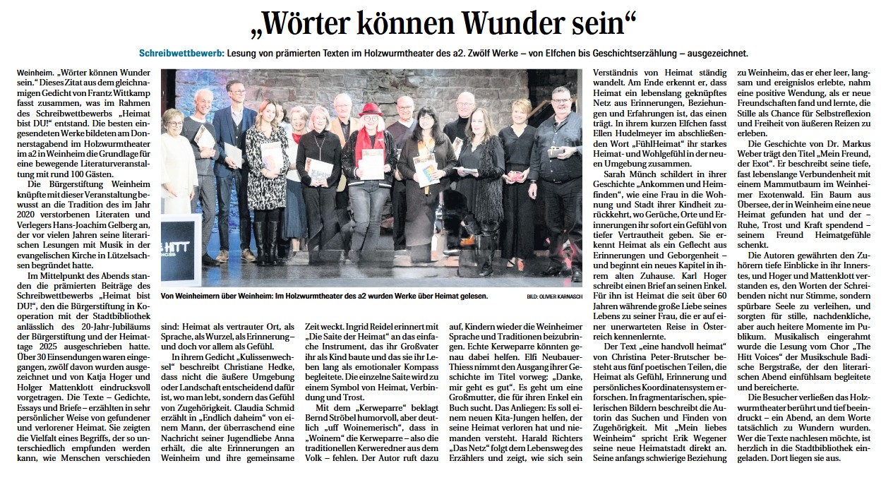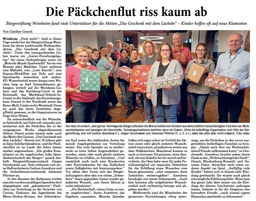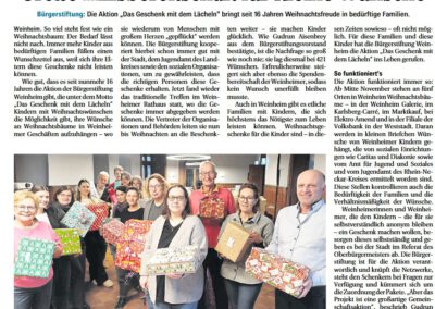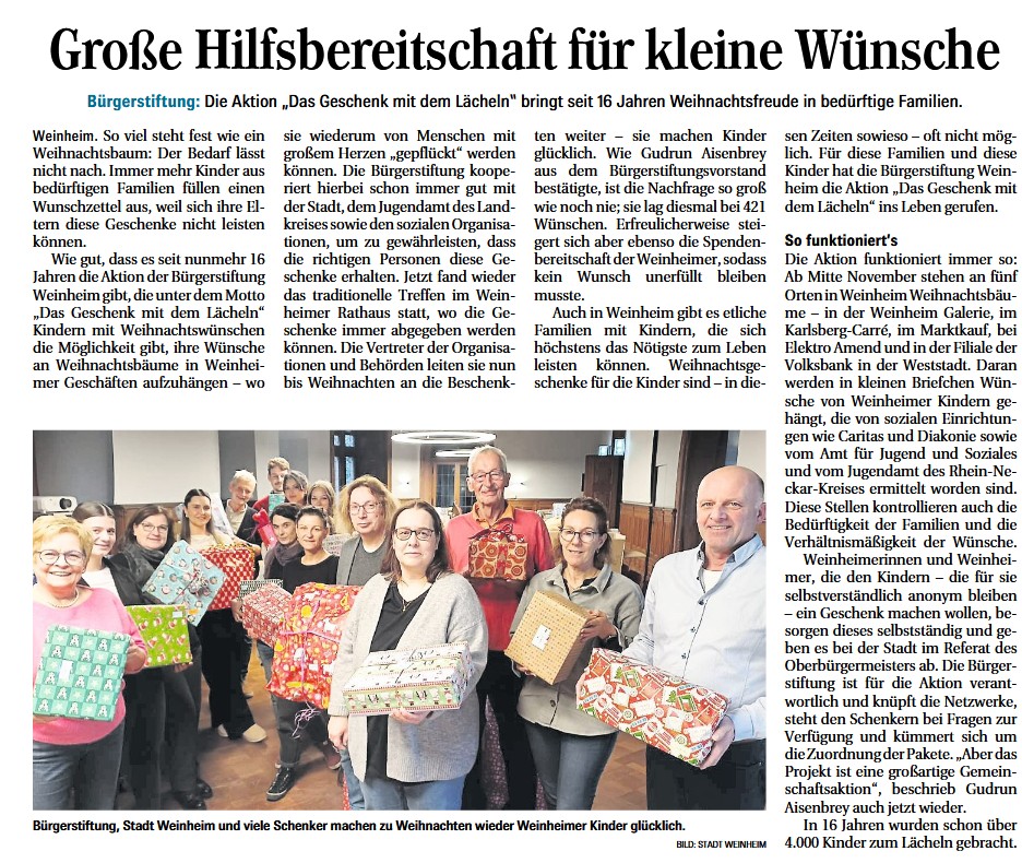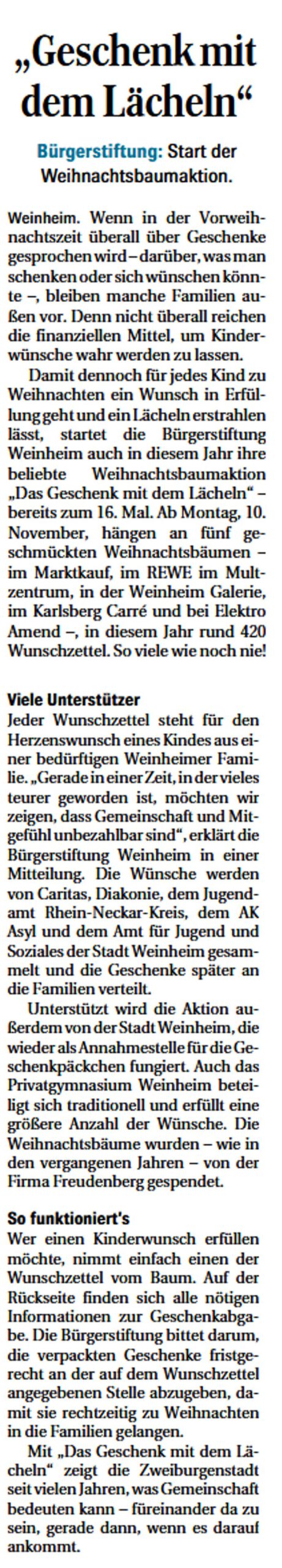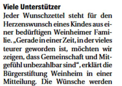 Wir danken an dieser Stelle den Weinheimer Nachrichten (WN), der Rhein-Neckar-Zeitung (RNZ) und der Weinheimer Woche (WW), die sich mit viel Interesse und Wohlwollen unserer Sache annehmen!