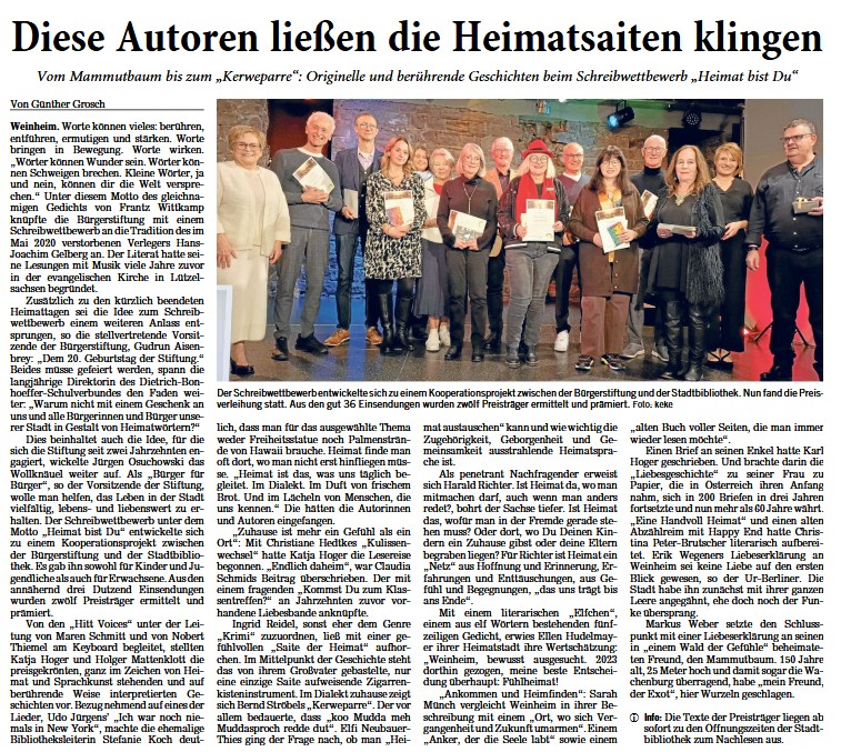 Alle Artikel der letzten Jahre über die Aktivitäten der Bürgerstiftung sind hier als Bilddateien hinterlegt. Sie finden sie hier in einer Galerieansicht chronologisch absteigend.